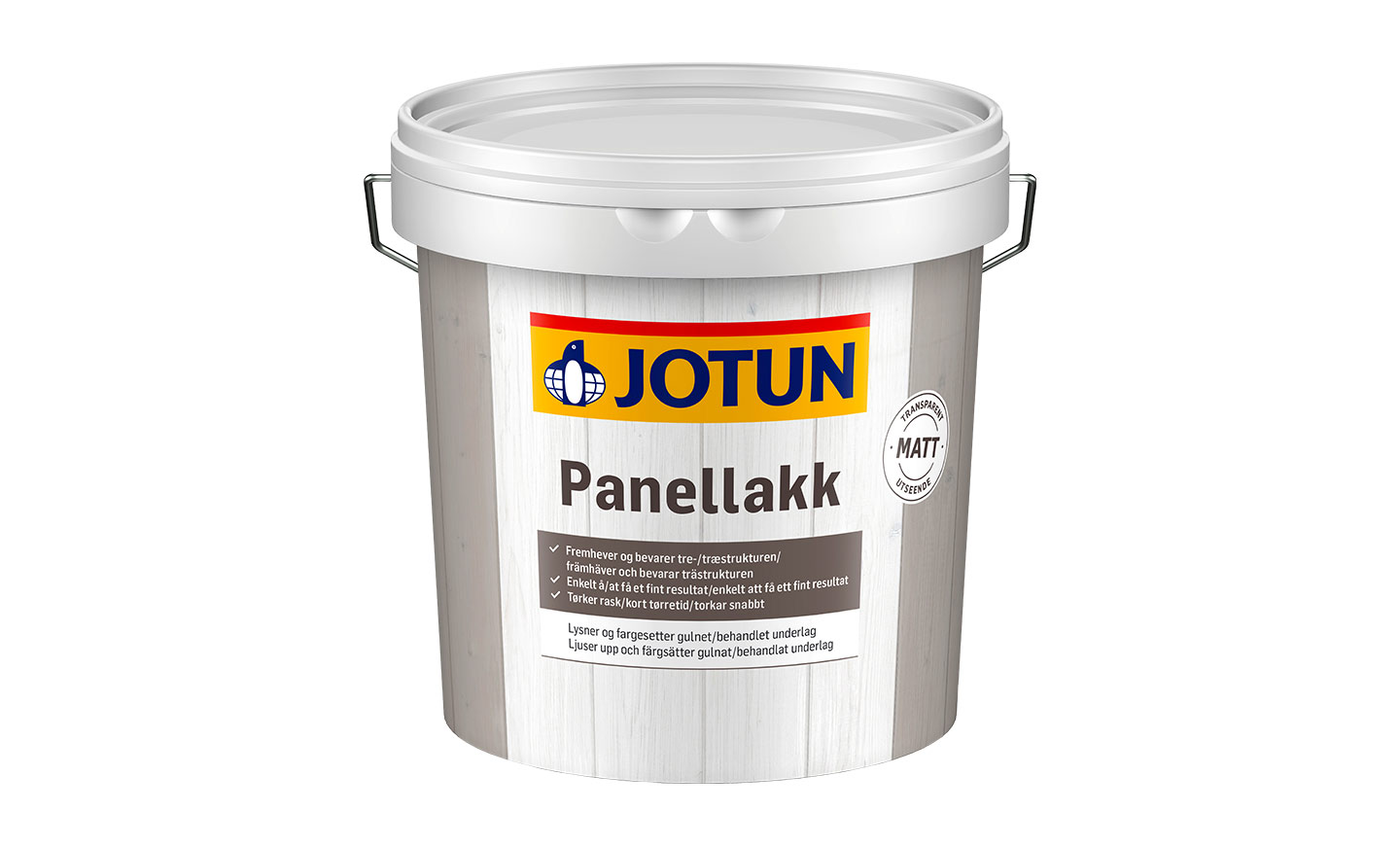 JOTUN Panellakk gir nytt liv til gulnet panel og fornyer og bevarer treverket. Den er enkel å påføre med lite drypp og søl, og tørker raskt. Inneholder lysfilter som effektivt reduserer gulning og beskytter underlaget mot fett, vann og annet som kan gi skjemmende flekker. Det et lett å få et fint resultat. JOTUN Panellakk påføres i ett eller to strøk. Kan også benyttes på nytt treverk.